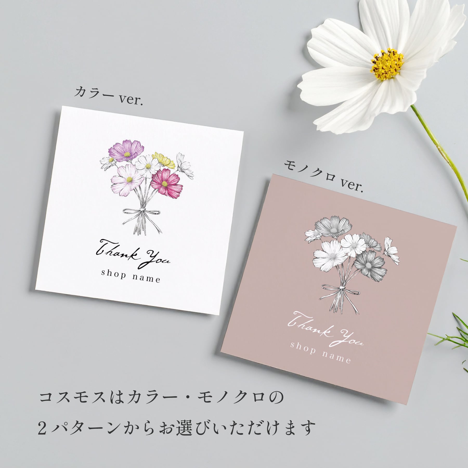 ショップカード サンクスカード サンキューカード メッセージカード ギフトカード ママ友名刺 オリジナル 台紙 セミオーダー 正方形 スクウェア スクエア 真四角 花 植物 フラワー ナチュラル コスモス 秋桜 こすもす 小さめサイズ ミニサイズ プチサイズ 小さい サンキュータグ ショップタグ アクセサリー台紙 ネイルチップ台紙